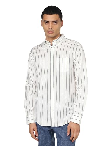 GANT - جانت قميص أكسفورد مخطط بقصة عادية للرجال - EGGSHELL-S - 3230037