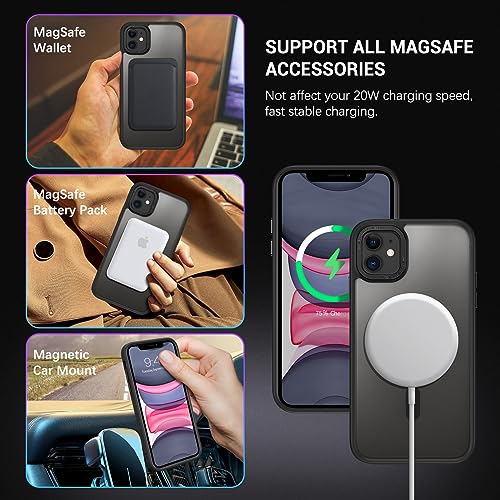 GaoBao - جراب موبايل آيفون 11 متوافق مع ماج سيف من جاوباو، جراب مغناطيسي هجين شفاف غير لامع، غطاء كاميرا نحيف مضاد للصدمات ومضاد للخدش لموبايل آيفون 11 6.1 بوصة، لون أسود