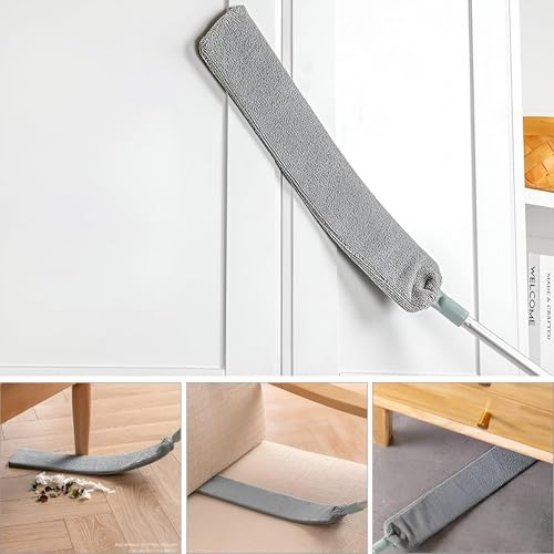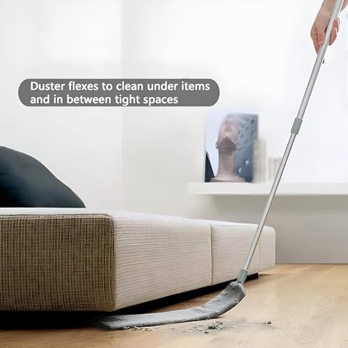 - [رأس قابل للانحناء والإزالة مجانًا]: منفضة التنظيف المرنة الطويلة ذات الرأس المسطحة هي أداة التنظيف المثالية للأماكن التي يصعب الوصول إليها. ينزلق التصميم المسطح الطويل بسهولة بين أجهزة المطبخ وغسالة الملابس والمجفف والدواليب العميقة وتحتها.