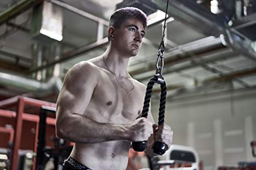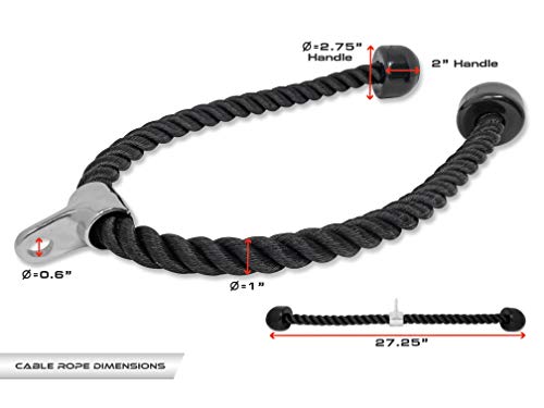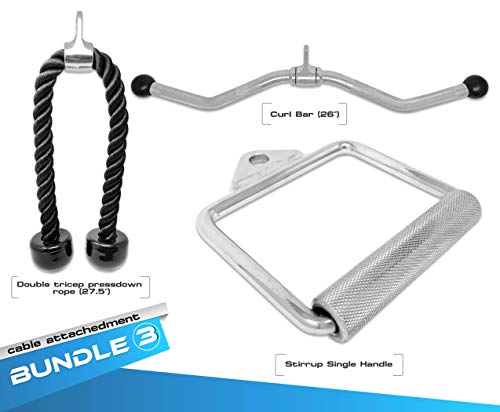 Garage Fit - كراج فيت مجموعة ملحقات كيبل صالة الالعاب الرياضية من 3 قطع | حبل ضغط مزدوج لثلاثية الرؤوس 27.5 انش | مقبض واحد | قضيب مموج صلب دوار 26 كروم