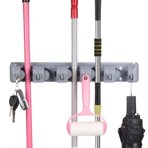 generic - اداة جراج - منظم، حامل ممسحة ومكنسة يثبت على الحائط، حل تخزين شديد التحمل للمراب والسقيفة والقبو وغرفة الغسيل، يتضمن براغي ومثبتات للتثبيت الامن على اي جدار.