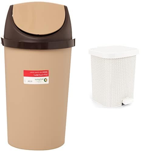 El Helal and Golden star - سلة مهملات روما سعة 45 لتر بيج كافيه *بني + سلة مهملات كبيرة الهلال اند جولدن ستار بتصميم نخيل ابيض، 20 لتر، الضغط بالقدم