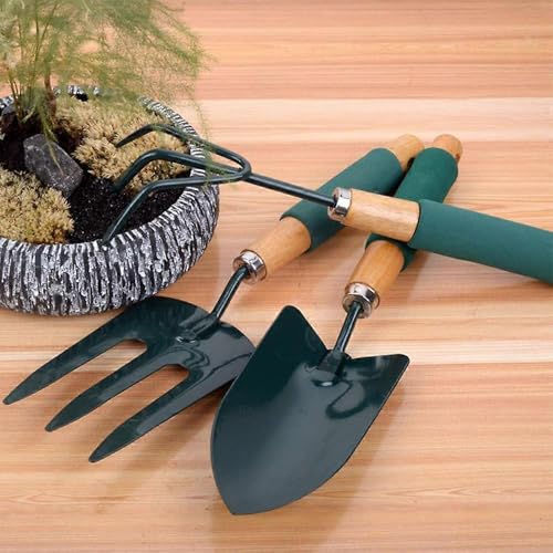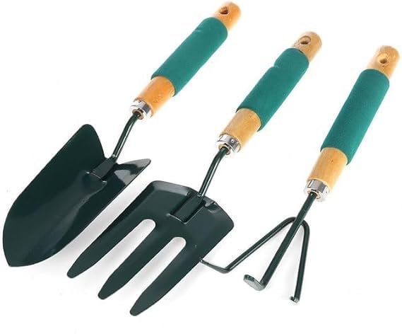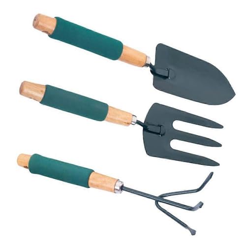 Generic - طقم أدوات زراعة يدوية للحديقة، أدوات بمقابض خشبية، مجرفة وشوكة وأداة حرث، معدن متين، أدوات بستنة للحدائق والشرفات، جودة ممتازة، 3 قطع