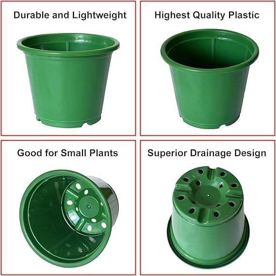 Generic - أوعية نباتات حديقة بلاستيكية مع فتحات تصريف، أصيص زراعة خفيف الوزن للاستخدام داخل المنزل وخارجه، 4 قطع، 16 سم، أخضر