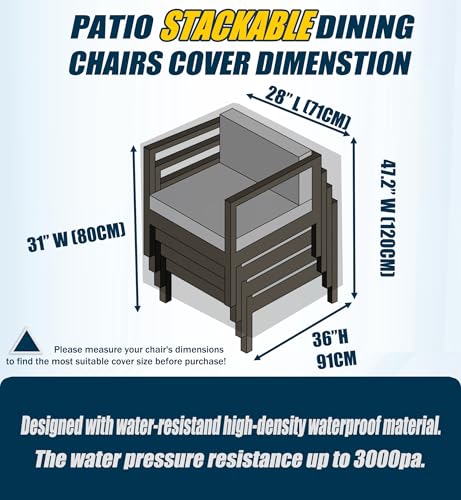 OUTTDID - غطاء كرسي حديقة قابل للتكديس مقاوم للماء وشديد التحمل من قماش اكسفورد 600D عالي الظهر للفناء الخارجي للحماية من الرياح والاشعة فوق البنفسجية (71 × 91 × 80/120 سم)