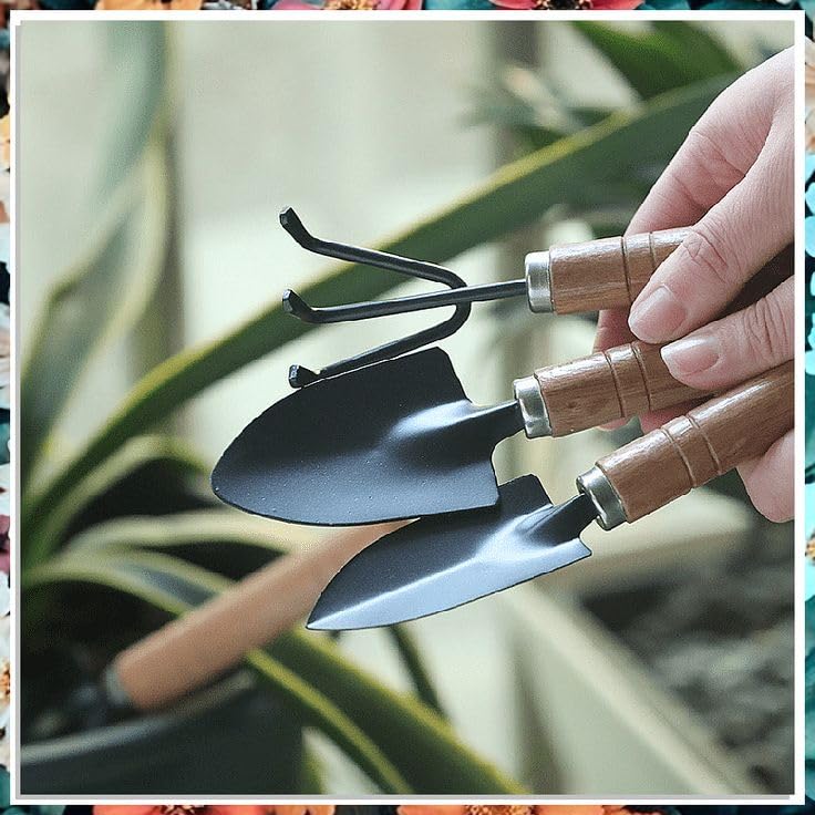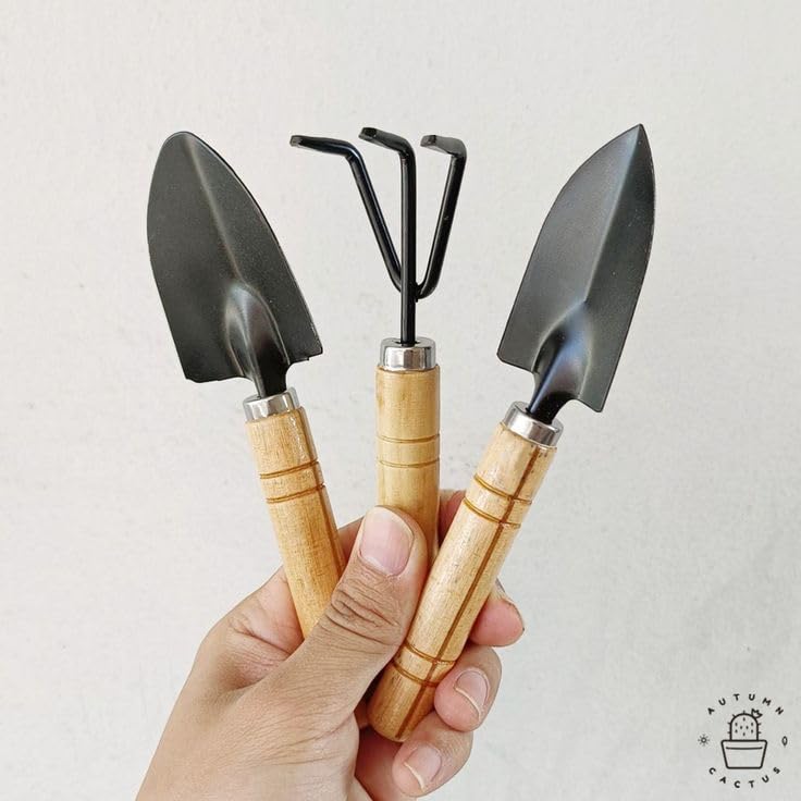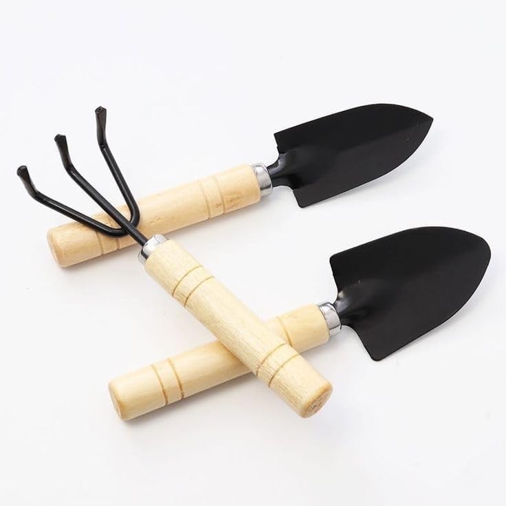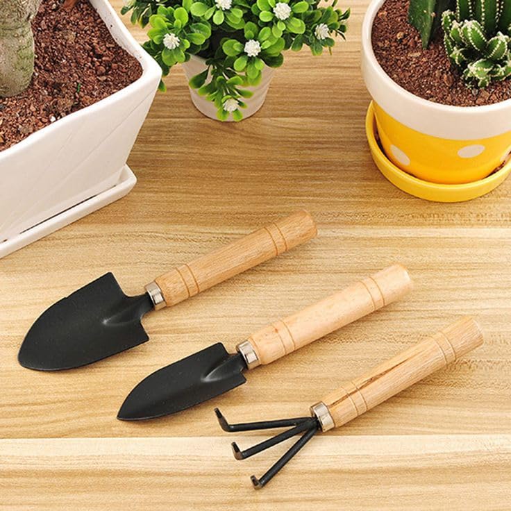 Generic - مجموعة أدوات الحديقة ٣ قطع، مجرفة صغيرة خشبية المقبض، معدات بستنة يدوية مصغرة