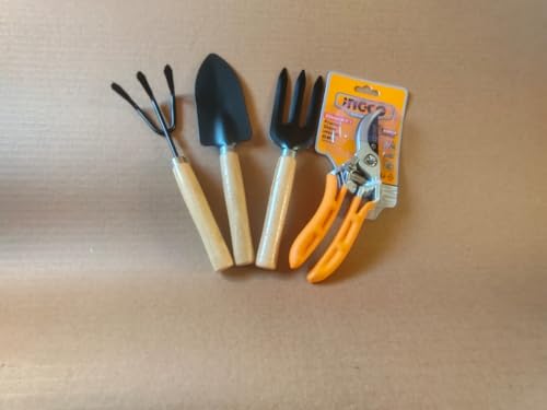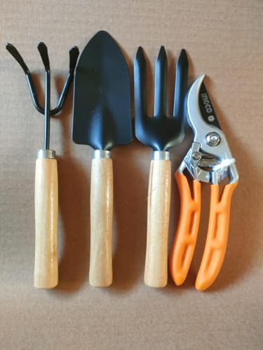 - مجموعة متكاملة: طقم حدائق من ٤ قطع يشمل مجرفة يدوية، مقص تقليم، مجرفة صغيرة، ومنكاش للتربة