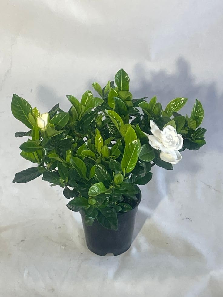 Generic - نبات الجاردينيا المزهر، نبتة داخلية مع أزهار بيضاء، في وعاء أسود، ٣٠ سم