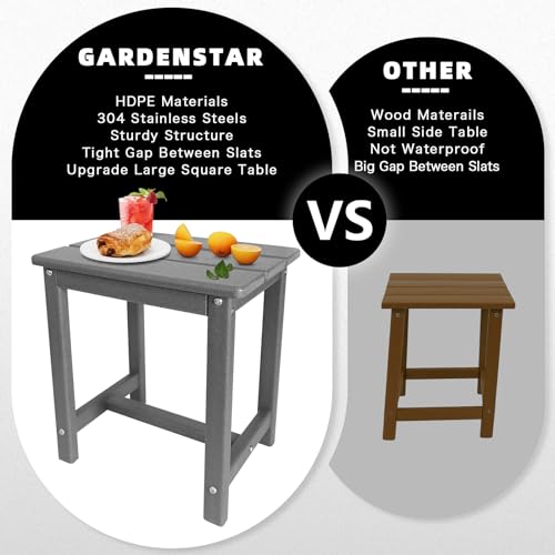 GARDENSTAR - طاولة جانبية بشكل مربع اديرونداك، طاولة خارجية مكونة من طبقة واحدة مناسبة للفناء وحمام السباحة والشرفة والفناء الخلفي بحيث تكون رفيق الاسترخاء من جاردنستار (رمادي)