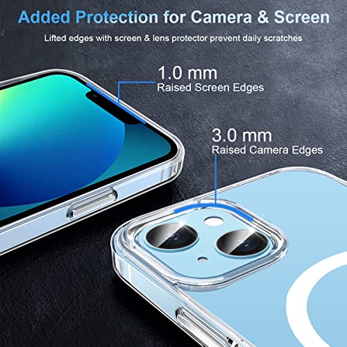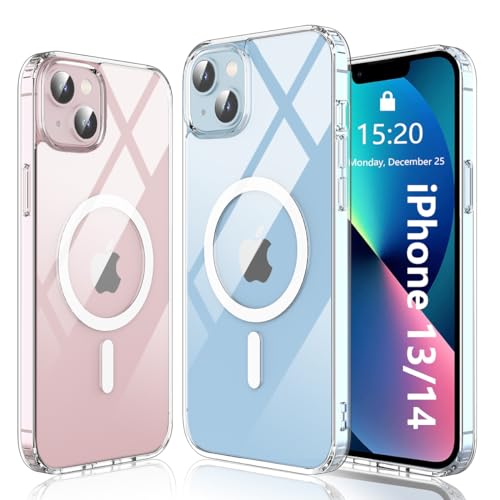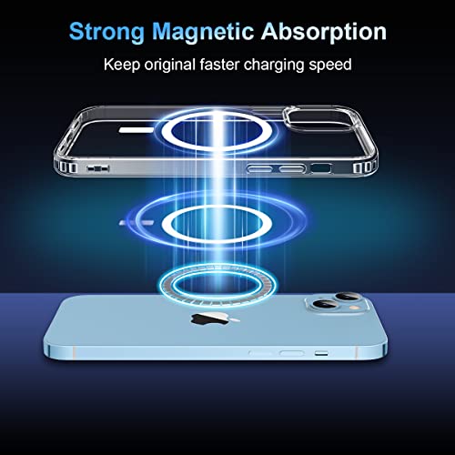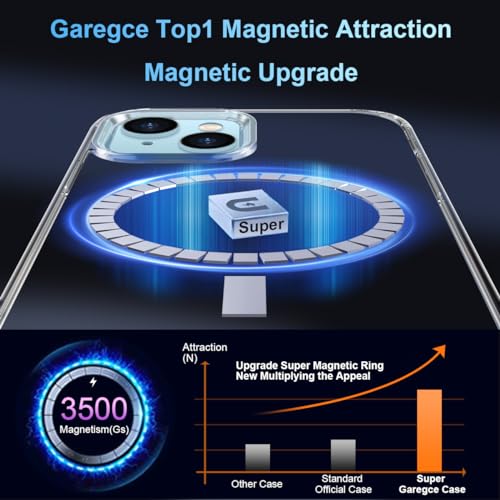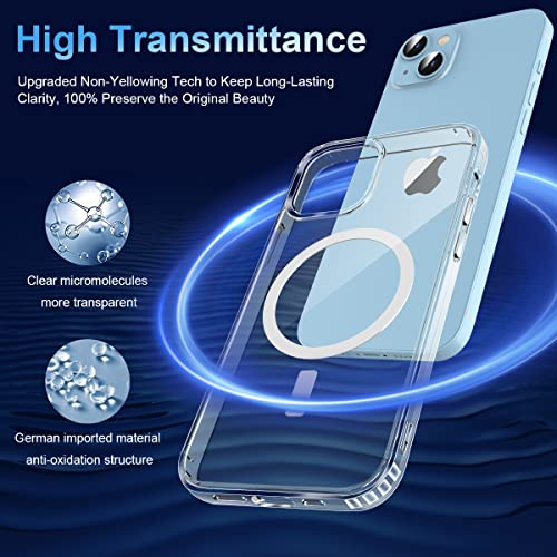 Garegce - جراب حماية جارجي سي للآيفون 13 / آيفون 14 متوافق مع ماج سيف، حماية مضادة للاصفرار بولي يوريثان حراري مغناطيسي + ظهر بولي كربونات صلب، غطاء حثي مغناطيسي سيليكون مضاد للصدمات – 6.1 بوصة – شفاف