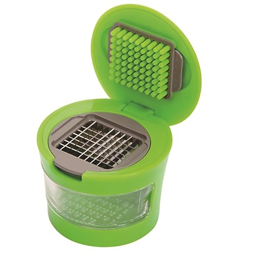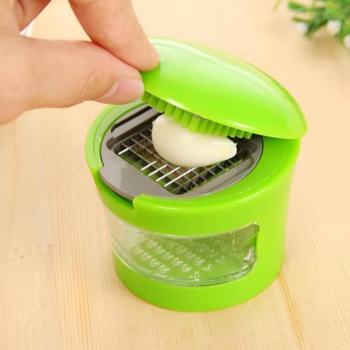 Generic - هراسة ثوم متعددة الوظائف مع قطاعة شرائح وحاوية تخزين وشفرات من الفولاذ المقاوم سهلة التنظيف والاستخدام في المطبخ