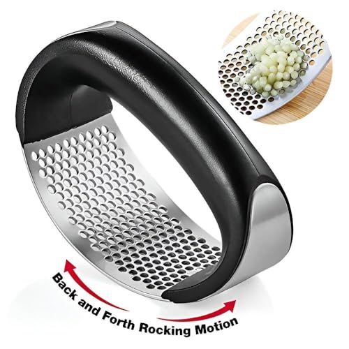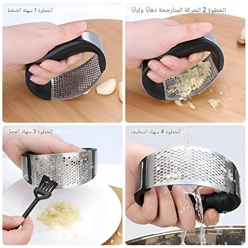 - تتميز هراسة الثوم والزنجبيل بهيكل قوي من الستانلس ستيل يضمن المتانة وطول العمر. على عكس مكابس الثوم التقليدية، يسمح هذا التصميم العصري بسهولة سحق وتقطيع الثوم والزنجبيل والبصل بأقل جهد. ما عليك سوى تحريك يديك ذهابًا وإيابًا لتحقيق القوام المطلوب دون التعرض لخطر الإفراط في الهرس والحفاظ على رائحة ونكهة الثوم. تصميمها المريح يجعلها مناسبة للمستخدمين من جميع نقاط القوة، مما يضمن لك الراحة