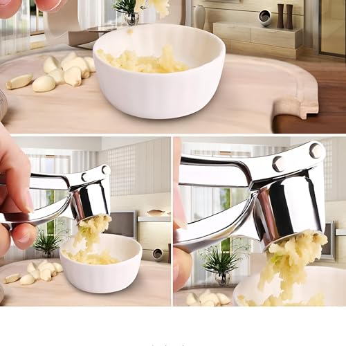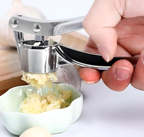Generic - هراسة ثوم - ستانلس ستيل عالي الجودة بزاوية 160 درجة، تصميم انيق ومقبض مريح لتحضير الثوم والزنجبيل بدون جهد
