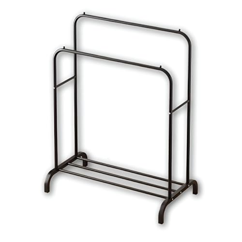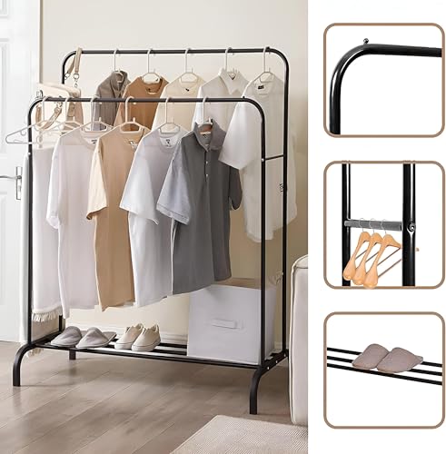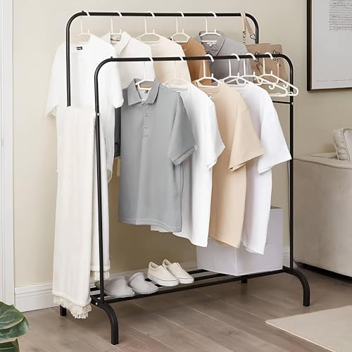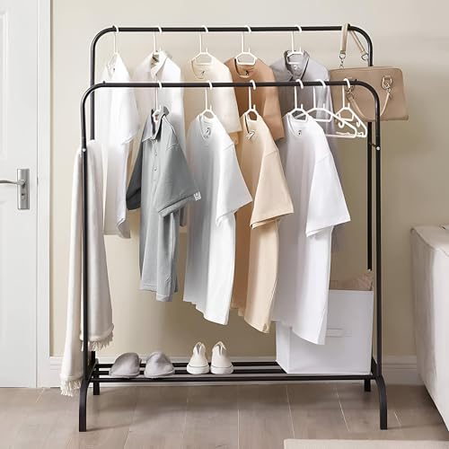 Generic - رف ملابس - منظم ملابس معدني قائم بذاته بقضيب مزدوج مع رف احذية مدمج ولمسة نهائية سوداء أنيقة لتخزين فعال في خزانة الملابس.
