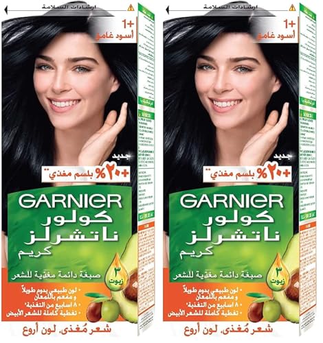 Garnier - صبغة شعر كريم دائمة بالألوان الطبيعية من غارنييه - 1+ أسود الترا (عبوة من 2)