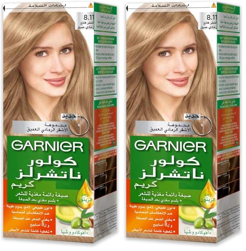 Garnier - صبغة شعر كريمية دائمة رقم 8.11 أشقر فاتح رمادي عميق من غارنييه كولور ناتشرلز، قطعتان