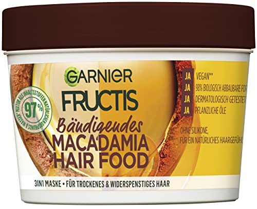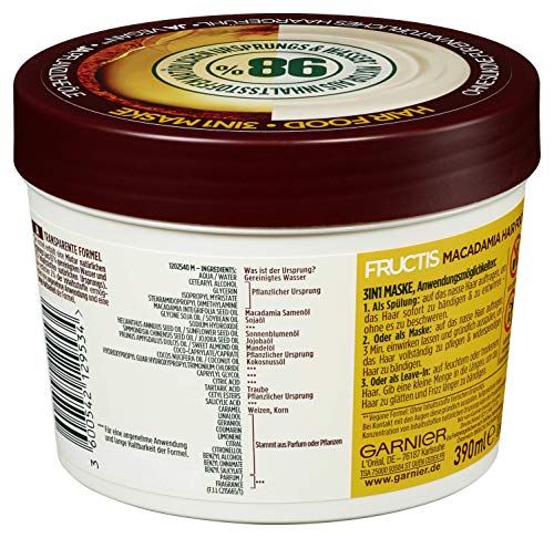 Garnier - ماسك للشعر فروكتس تامينج بالمكاديميا لملمس شعر طبيعي من جارنييه، 390 مل