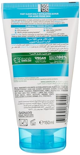 Garnier - غسول الوجه فاست كلير 3 في 1 من غارنييه سكين اكتيف، للبشرة المعرضة لحب الشباب مع حمض الساليسيليك وفيتامين سي، 50 مل (عبوة من 2)