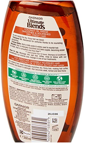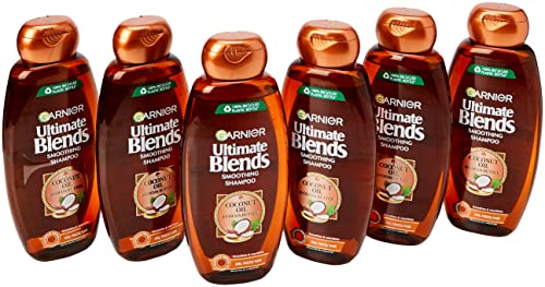 Garnier - شامبو التيميت بليندز من غارنييه، مرطب سليك بزيت جوز الهند وزبدة الكاكاو لشعر ناعم وخالي من التجعد، 360 مل، عبوة من 6 قطع