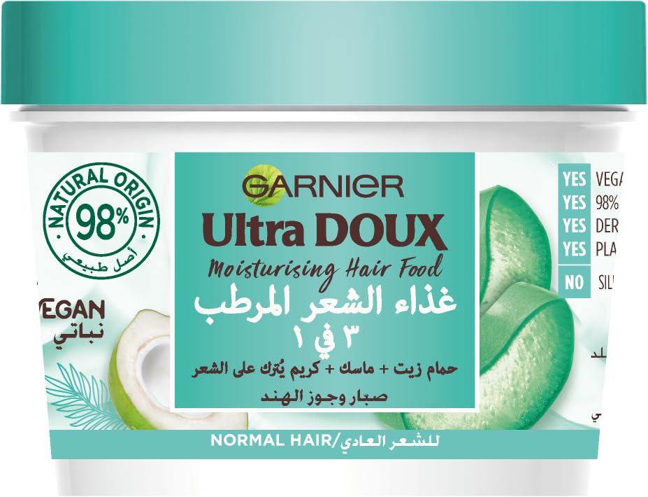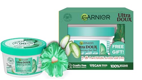 Garnier - مجموعة تغذية الشعر بالصبار 3 في 1 الترا دوكس + سكرانشي أخضر مجاني من غارنييه