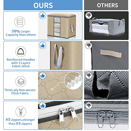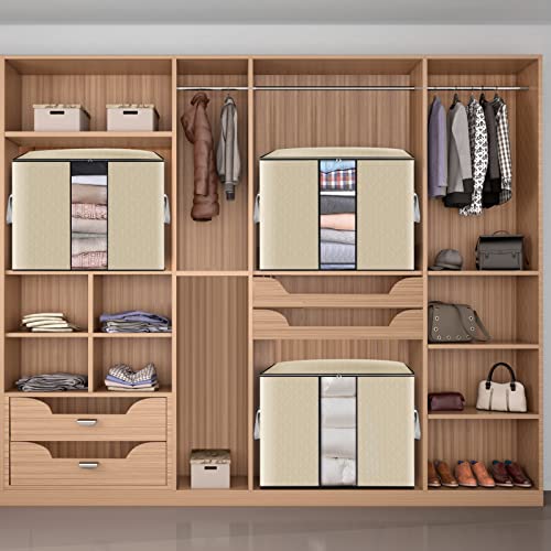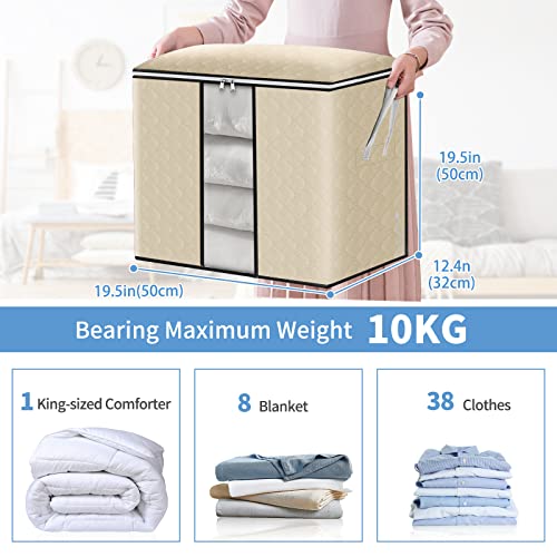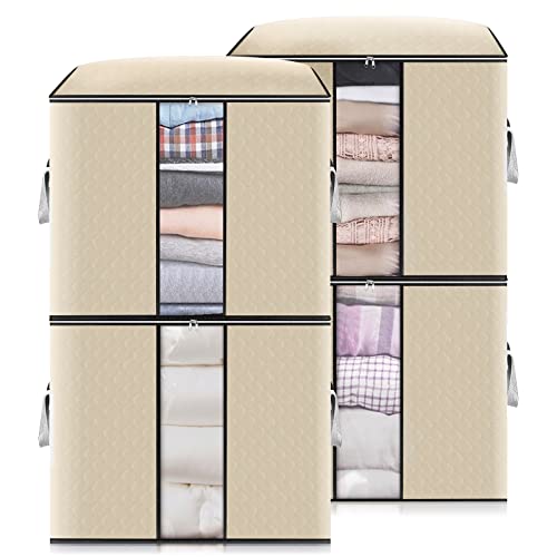 GARPROVM - شنط تخزين كبيرة لتخزين الملابس تحت السرير قابلة للطي مع مقبض معزز للألحفة والملابس، 4 قطع، 90 لتر، بيج، نافذة ضيقة، من جاروفوم، ستانلس ستيل