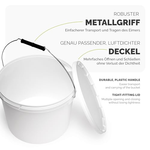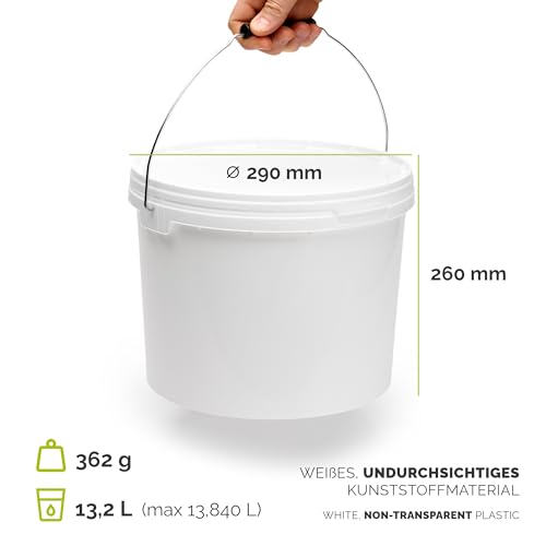 Garronda - جردل بغطاء سعة 12 لتر لتخزين الطعام والمواد الكيميائية من جاروندا، قطعة واحدة، أبيض، GD-0071