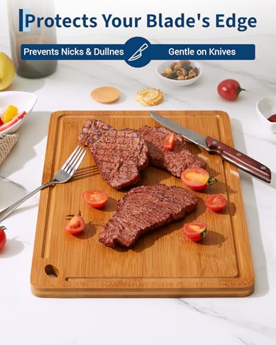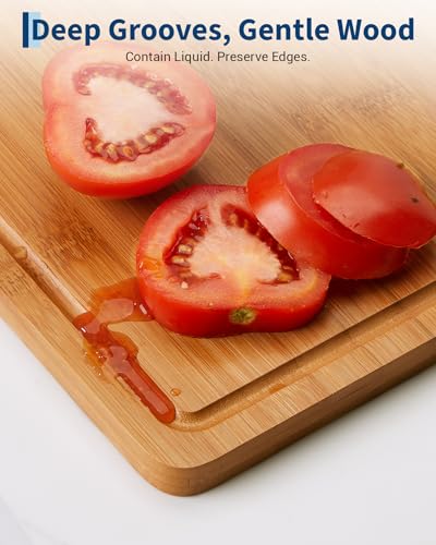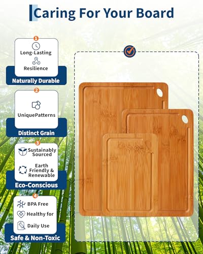Garvee - مجموعة الواح تقطيع من الخيزران من جارفي مكونة من 3 قطع - الواح تقطيع خشبية متعددة المقاسات مع اخاديد عصير عميقة ومقبض مدمج، للاستخدام في المطبخ