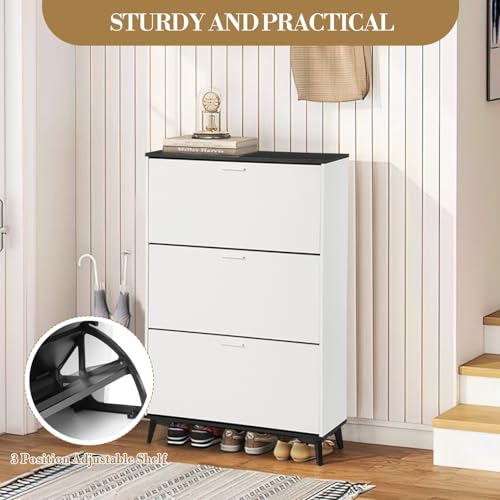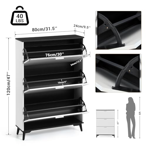 GarveeHome - خزانة احذية طويلة 47 انش من جارفي هوم، خزانة تخزين احذية مع 3 ادراج قلابة، رف احذية ريفي قائم بذاته مع ارجيل، خزانة احذية ضيقة للمدخل والرواق والخزانة