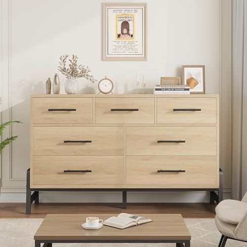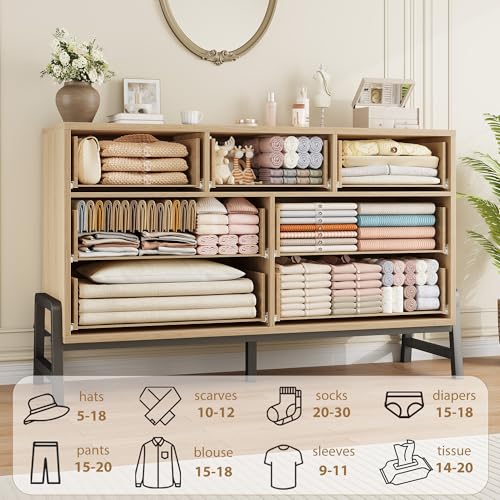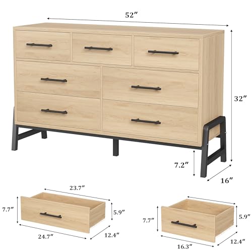 GarveeHome - خزانة ملابس من جارفي هوم 7 لغرفة النوم، خزانة عرض 52 انش، درج عريض مع مساحة تخزين قائمة بذاتها، خزانة خشبية لغرفة المعيشة وغرفة النوم والمدخل، خشب البلوط الطبيعي