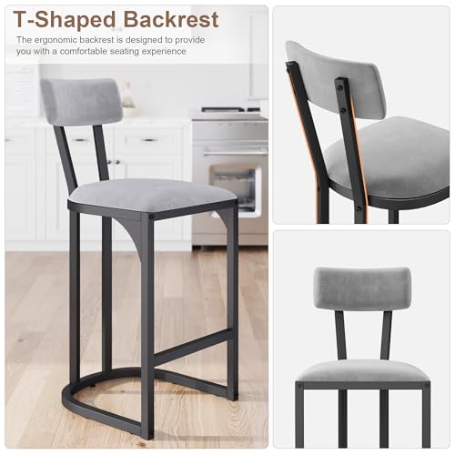 GarveeHome - مجموعة مقاعد بار من جارفي هوم مكونة من قطعتين، مقعد بار بارتفاع المنضدة، ظهر منحني مع اطار معدني، كراسي جزيرة طويلة منجدة عصرية ومنجدة للمطبخ وغرفة الطعام (رمادي)