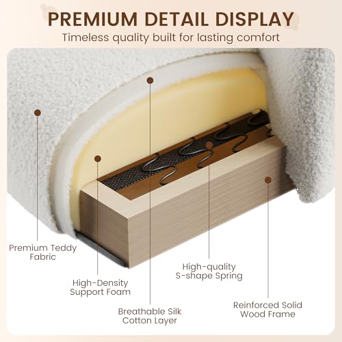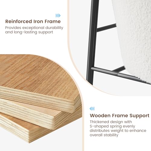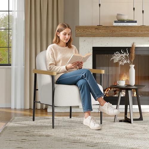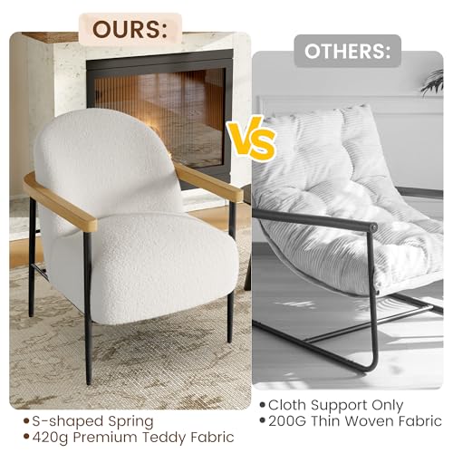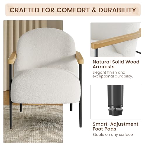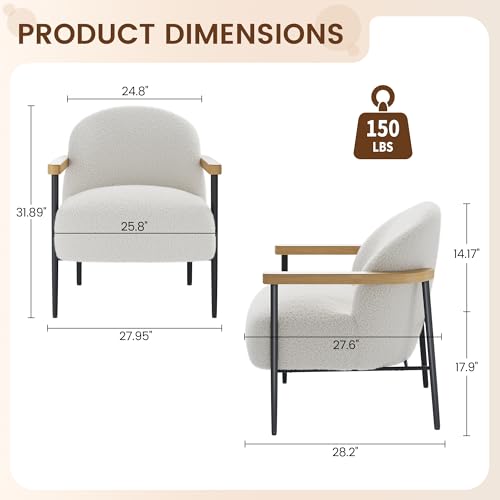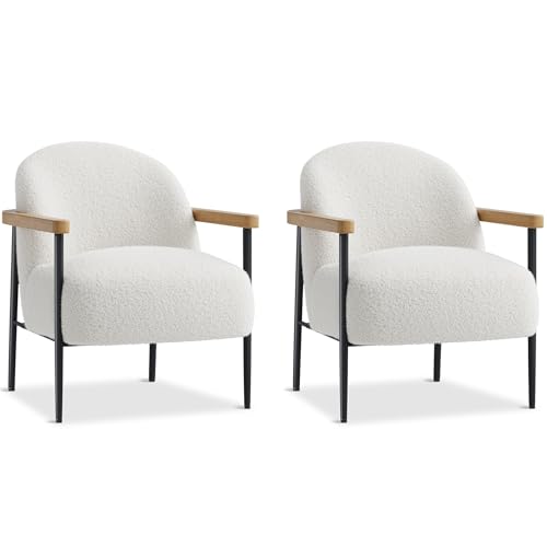 GarveeHome - طقم كراسي من قماش تيدي باطار معدني وارجل قابلة للتعديل واذرع خشبية لغرفة المعيشة وغرفة النوم وغرفة الاستقبال، مجموعة من قطعتين من جارفي هوم، لون ابيض