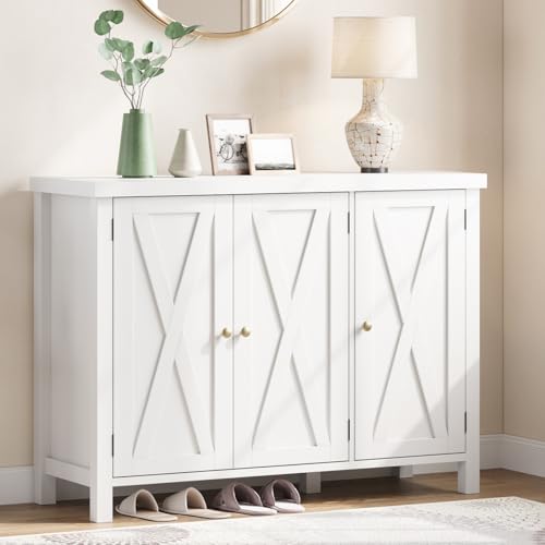 - جمالية بيت المزرعة: تجمع خزانة الأحذية البيضاء هذه بين العملية والأناقة وتتميز بلمسة نهائية بيضاء ومقابض معدنية ذهبية. تضيف خزانة الأحذية ذات التصميم الكلاسيكي لباب الحظيرة لمسة من أناقة منزل المزرعة إلى أي مدخل أو بهو أو رواق أو غرفة معيشة.