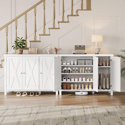 GarveeHome - خزانة احذية مع ابواب من جارفي هوم، خزانة تخزين احذية بطول 35 انش للمدخل، خزانة احذية من 4 طبقات مع مساحة تخزين، خزانة تنظيم احذية كبيرة للمدخل، ابيض