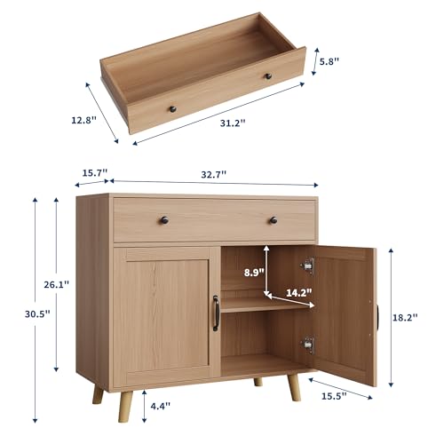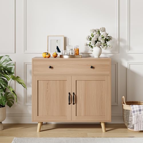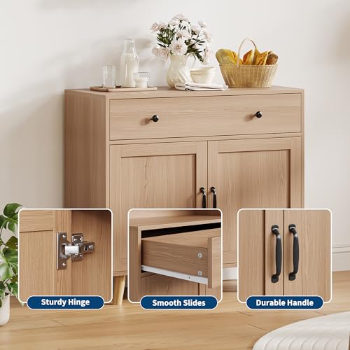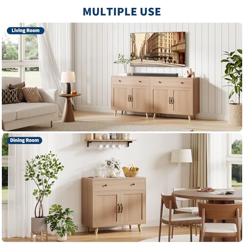 GarveeHome - خزانة بوفيه جانبية مع مساحة تخزين من جارفي هوم، خزانة قهوة مع ادراج وابواب، طاولة كونسول مميزة لغرفة المعيشة والمطبخ وغرفة الطعام والمدخل
