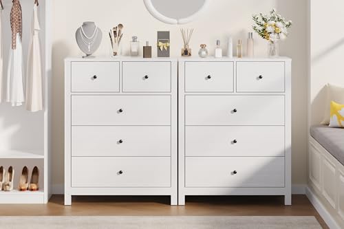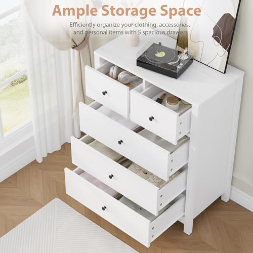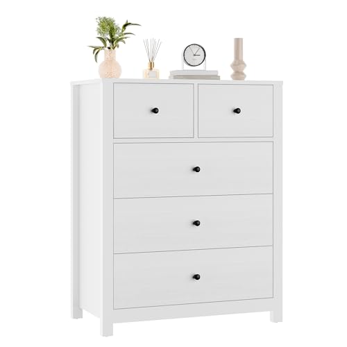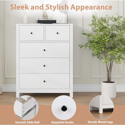 GarveeHome - خزانة ملابس بيضاء من جارفي هوم، 5 أدراج لغرفة النوم، منظم خزانة طويل عصري مع أدراج تخزين، صناديق تخزين خشبية لغرفة النوم والمدخل والرواق والمكتب المنزلي