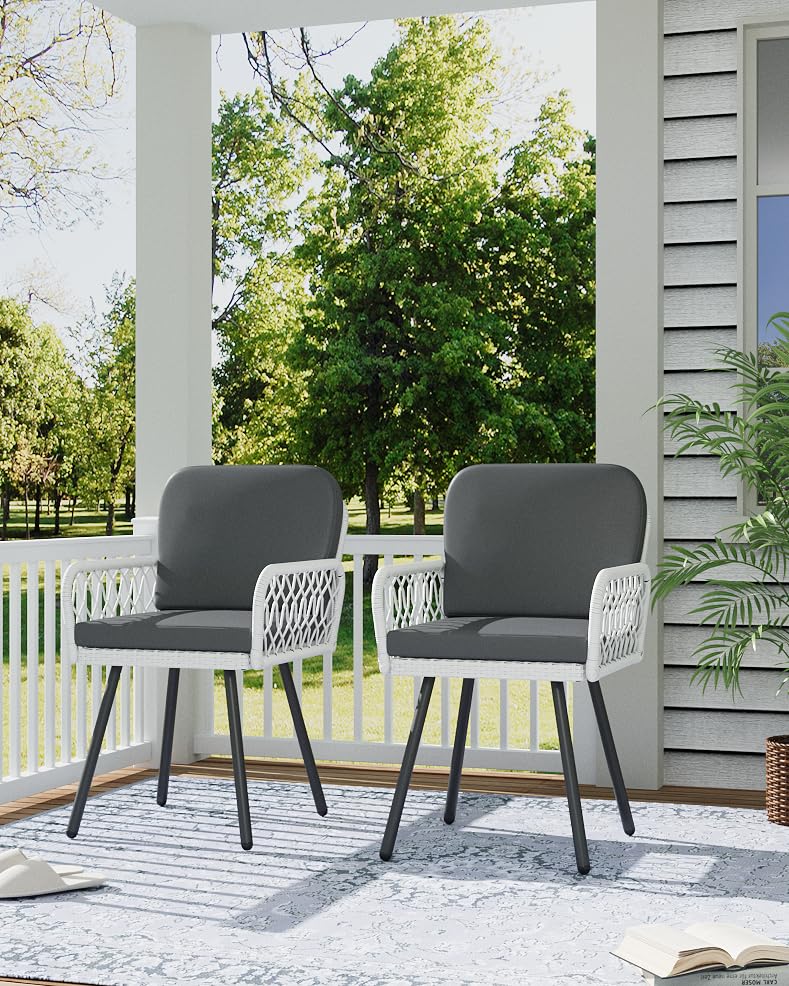 GarveeLife - مجموعة من 2 كراسي بذراعين عصرية للاستخدام الخارجي من جارفي لايف - كراسي فناء معدنية شديدة التحمل مع نسيج منسوج للفناء والشرفة وجانب حمام السباحة