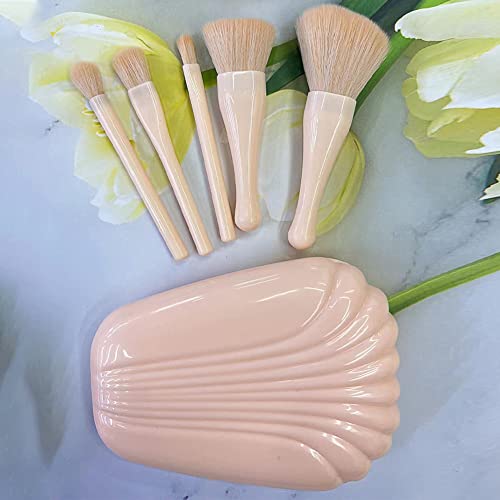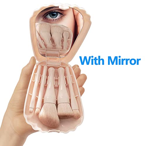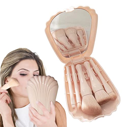 Garzenth - مجموعة فرش مكياج محمولة للسفر من جارزينث، فرش مكياج صغيرة كاملة الوظائف مع مرآة بحجم مناسب للسفر، مجموعة فرش مكياج الوجه، أدوات تجميل مريحة صغيرة، بلون درجة البشرة الفاتحة مجموعة من 5 قطع