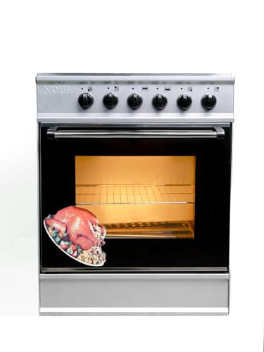 NOUR - بوتاجاز غاز 4 شعلات من الفولاذ المقاوم للصدأ مع أرجل قابلة للتعديل وباب زجاجي مطبوع ومدخل غاز مزدوج وصينية للدهون، GC-SC541، مقاس 55×54 فضي
