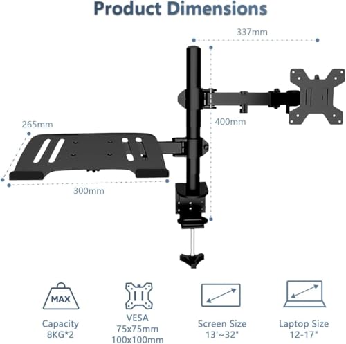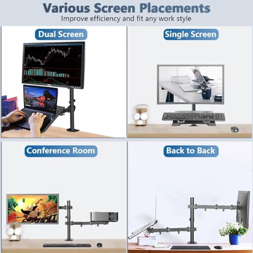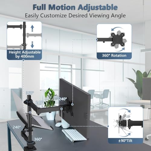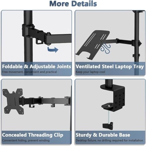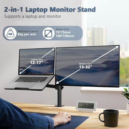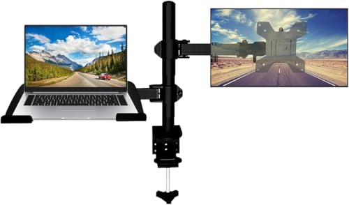 Generic - ذراع شاشات مزدوجة مزودة بسوستة غاز وحامل لاب توب، قاعدة تثبيت مكتبية قابلة للتعديل بالكامل لأجهزة اللاب توب مقاس من 12 إلى 17 بوصة وشاشات العرض المزدوجة ومتوافقة مع نظام التثبيت بالمشبك أو فتحة