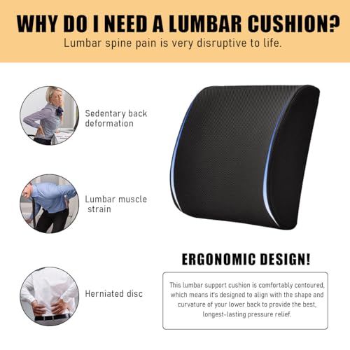 Gasedin - وسادة دعم أسفل الظهر من جاسدين - وسادة دعم الظهر من إسفنج الميموري فوم، وسادة للقطنية لتحسين وضعية الجلوس وتخفيف آلام الظهر، مناسبة للسيارة وكرسي المكتب، إكسسوار للسيارة (لون أسود)
