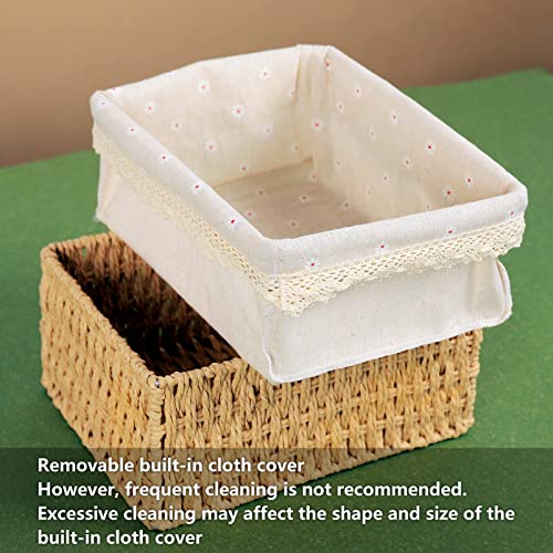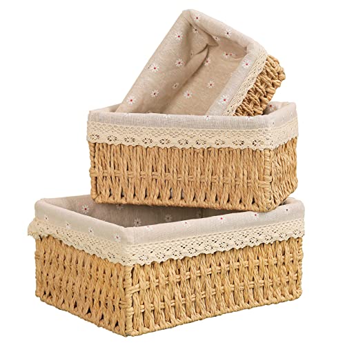 GATGOODS - مجموعة سلال تخزين من الخوص مكونة من 3 قطع مع غطاء قماشي مدمج، سلال تخزين من الحبال الورقية المعاد تدويرها، سلال منسوجة للتنظيم، سلال رفوف ديكور بوهو مثالية للمنزل والمكتب والحضانة