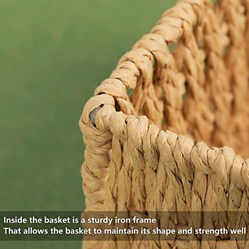 - [مواد قوية ومتينة] السلة المنسوجة مصنوعة يدويًا على يد حرفيين بإطار حديدي قوي، والجزء الخارجي منسوج بورق معاد تدويره، وتأتي مع غطاء قماشي مدمج يستخدم عملية التشكيل، قوي ومتين.