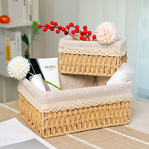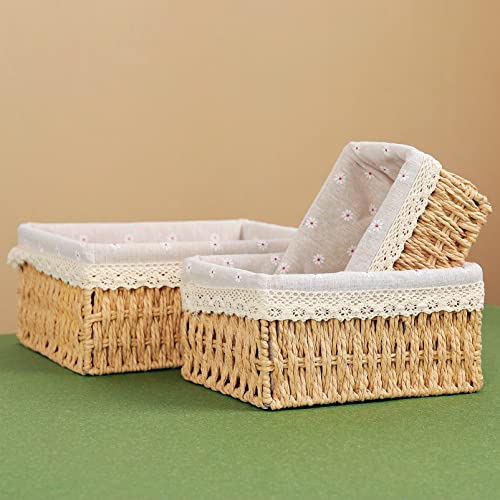 - [مقاسات متنوعة] تحتوي سلة الخوص المنسوجة على 3 مقاسات مختلفة: مقاس كبير L 26 × 20 × 12 سم؛ M: 22 × 16 × 11 سم؛ مقاس S: 18 × 12 × 10 سم، يمكن أن تكون الأحجام المختلفة مناسبة لتخزين جميع أنواع الأشياء لتلبية احتياجات التخزين اليومية، مما يحسن استخدام المساحة بشكل كبير.