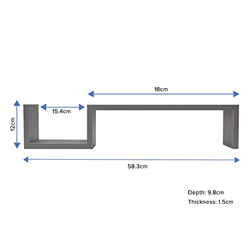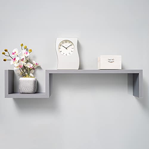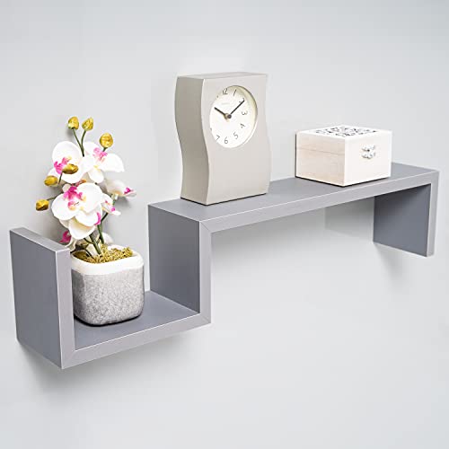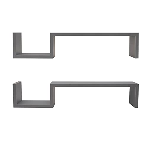 Gatton Design - رفوف معلقة من جاتون ديزاين تعلق على الحائط بتصميم حرف S لغرفة النوم وغرفة المعيشة والحمام والمطبخ والديكور، مسبقة التجميع، لون رمادي، خشب مُصنع
