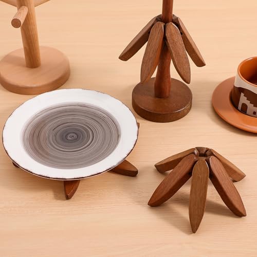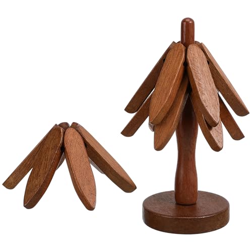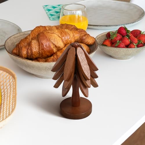 Gatuida - حامل أطباق خشبية على شكل شجرة للطاولة من جاتويدا، لون مطفي حوامل خشبية للأطباق الساخنة بلون الجوز العازل، قاعدة أكواب