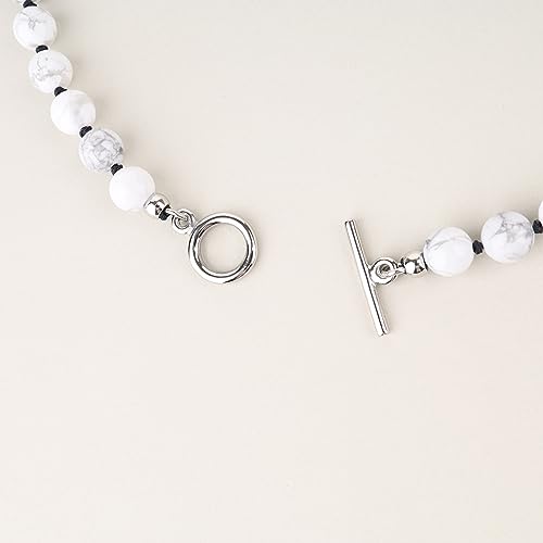 GAVU - جي ايه في يو قلادة خرز بسيطة من حجر هولايت معقود يدويًا بمشبك تبديل 20 انش 50 سم للرجال .