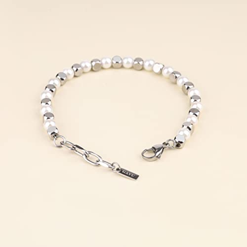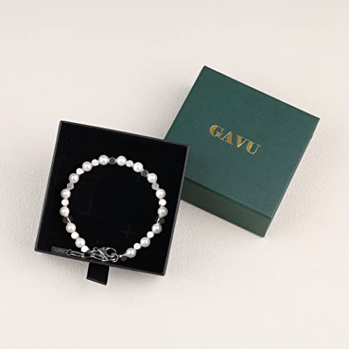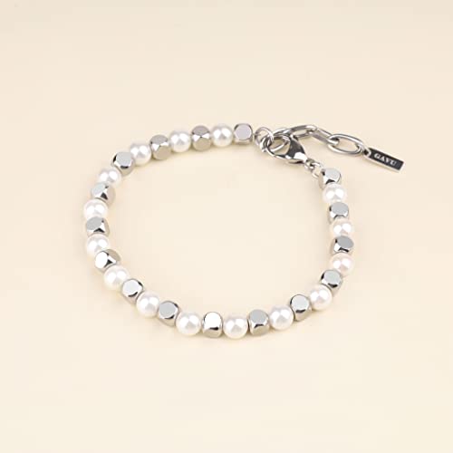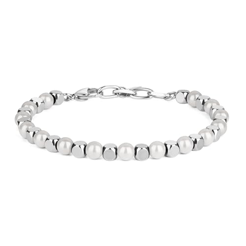 GAVU - سوار للرجال مع خرز على شكل صدف وقطع مربعة من الستانلس ستيل من جافو