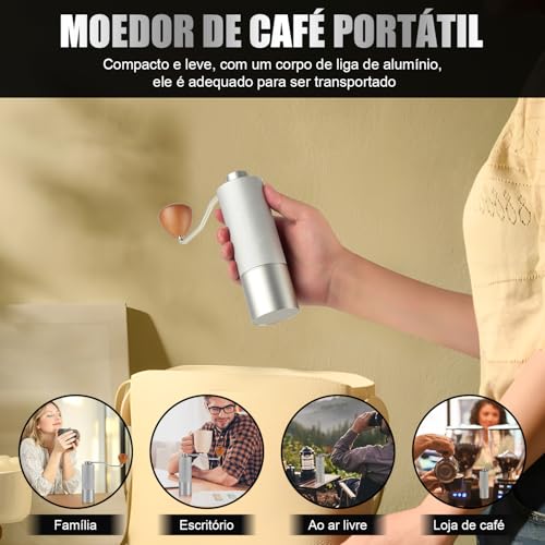 - خفيف الوزن وقابل للحمل: يزن 16.9 أونصة فقط، ويسهل حمله: يحتفظ الهيكل المعدني بمظهره الممتاز، بينما يتميز أيضًا بتصميم ديناميكي هوائي يقلل من حجم التخزين، مما يسمح له بالملاءمة المثالية في حقيبة الظهر أو المحفظة. سواء كنت في التخييم أو السفر، يمكن تخزينها بسهولة في زاوية حقيبتك، مما يسمح لك بطحن القهوة الطازجة في أي وقت، مما يجعل الرائحة ترافق كل رحلة.