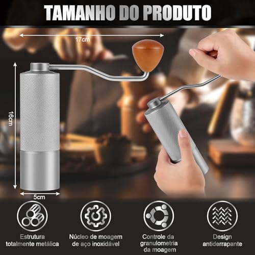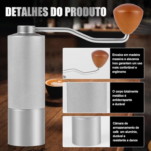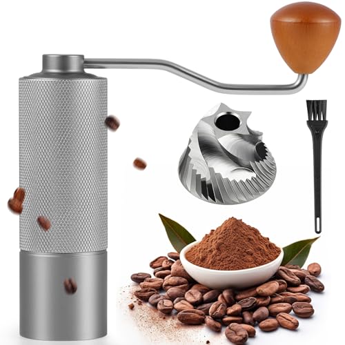 Gavzrt - مطحنة قهوة يدوية من جافزرت، مطحنة قهوة من الستانلس ستيل مع مقبض، مطحنة قهوة يدوية قابلة للتعديل مع فرشاة احترافية، مطحنة قهوة رمادية سعة 25 غرام