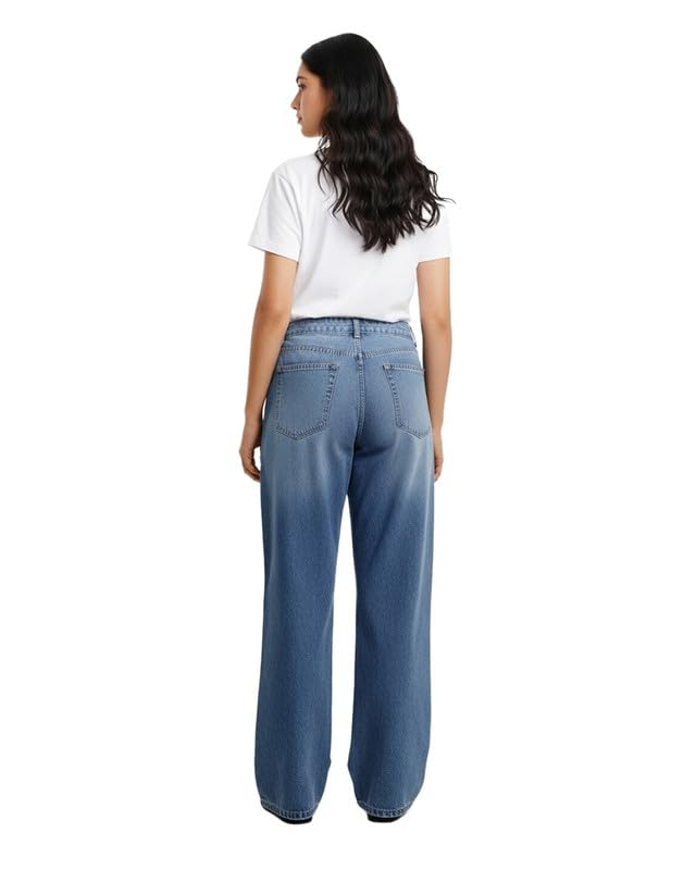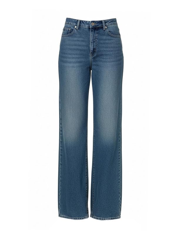 Gazall - بنطلون جينز أنيق بأرجل واسعة وتصميم كاجوال عصري للنساء من جازال، لون أزرق